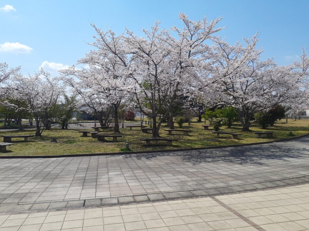3月末のポカポカ陽気で、正面入口前の園地の桜が一気に満開となりました。